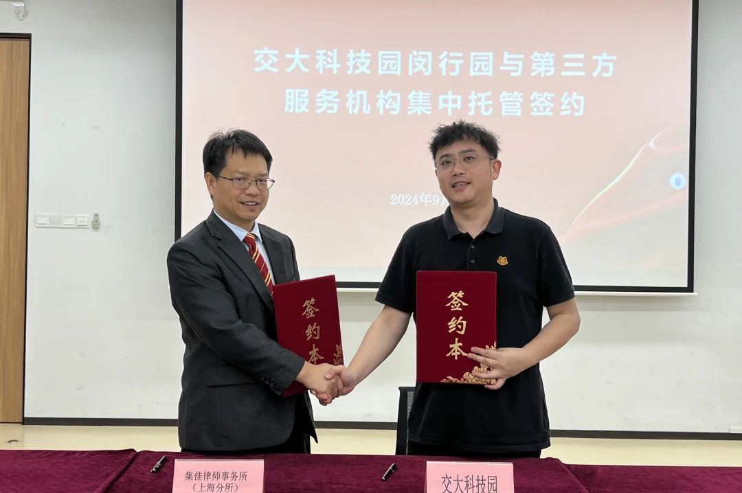 为助力企业科技创新和经济发展护航保障,提供高质量维权公益援助,会上举行了“上海市开发区协会维权援助工作站交大科技园闵行园工作室”揭牌仪式,交大科技园闵行园与澳客上海分所进行了托管签约。